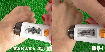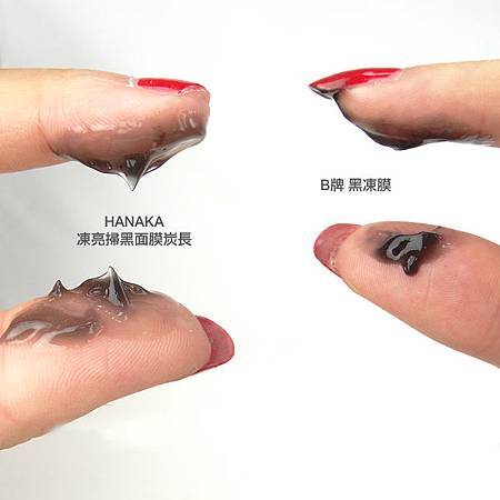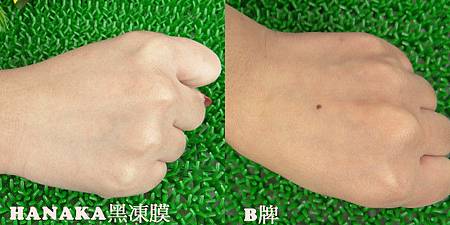 分別在左右手敷上HANAKA黑凍膜以及B牌凍膜