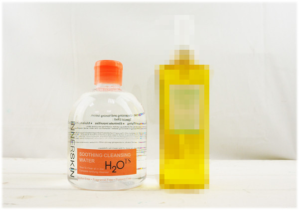 編編拿INNER SKIN 水潤光全效淨膚液&他牌卸妝油做比較
